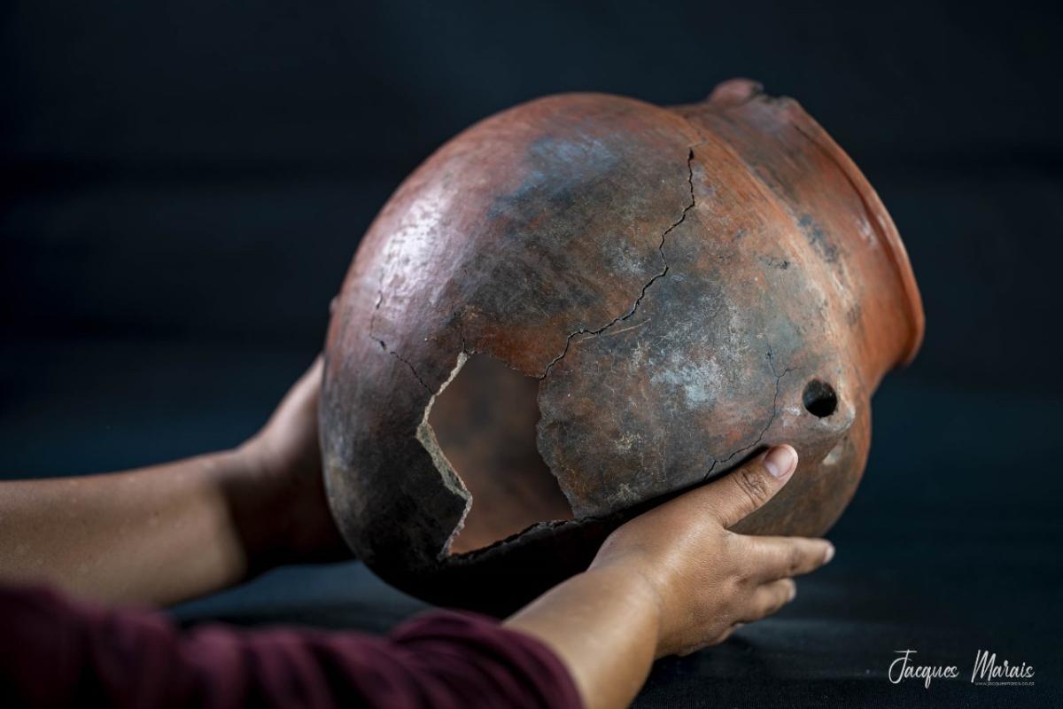 Dr Vuyiswa Lupuwana, a Professor at University of Cape Town, agrees: “The pot exhibits a classic stylistic affiliation with lugged pots and the body tapers towards the bottom, indicating that the pot was very likely a Khoekhoen lugged pot that ad rope or string fed through the lugs to facilitate easy transportation”.